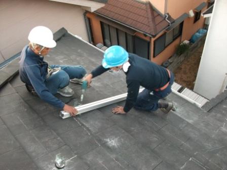 お客さまが立ち会うことのできない、屋根上での作業についても、雨漏れがしないよう、傷を付けないよう、細心の注意を払いながら、しっかり安心工事をさせていただいています。