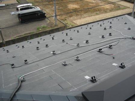 垂木を狙っての金具設置工事完了。この写真では設置位置に寸分の狂いがないことは分かりづらいですが・・・。